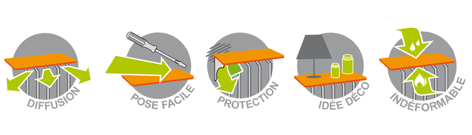 Cette tablette offrira un espace de rangement supplémentaire (pose de d’objets, livres, décorations, …) et amènera une touche décorative et design à votre radiateur. Elle est une alternative économique et esthétique au cache-radiateur.